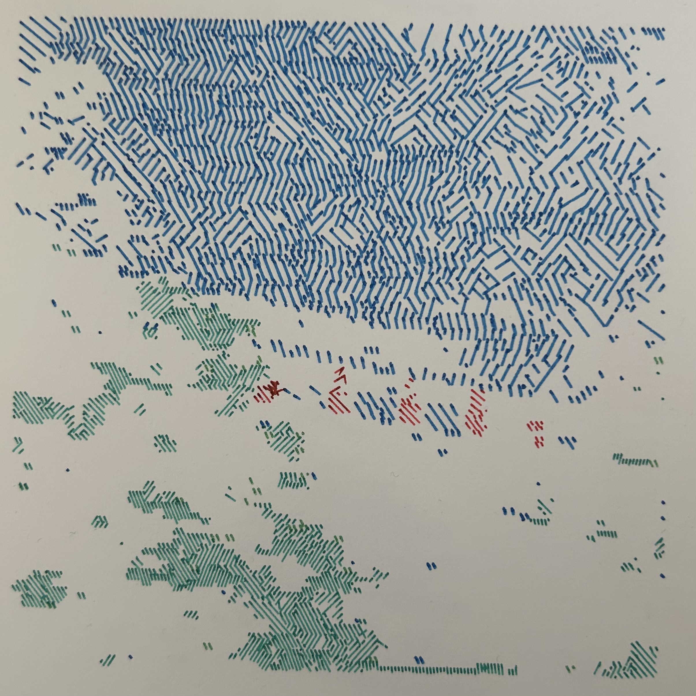After the last fiasco, I realised I should probably plot just 1 frame first to see if I actually like how it looks like. Something about seeing all that blue on the failed plot made me realise that it was... well, very blue.