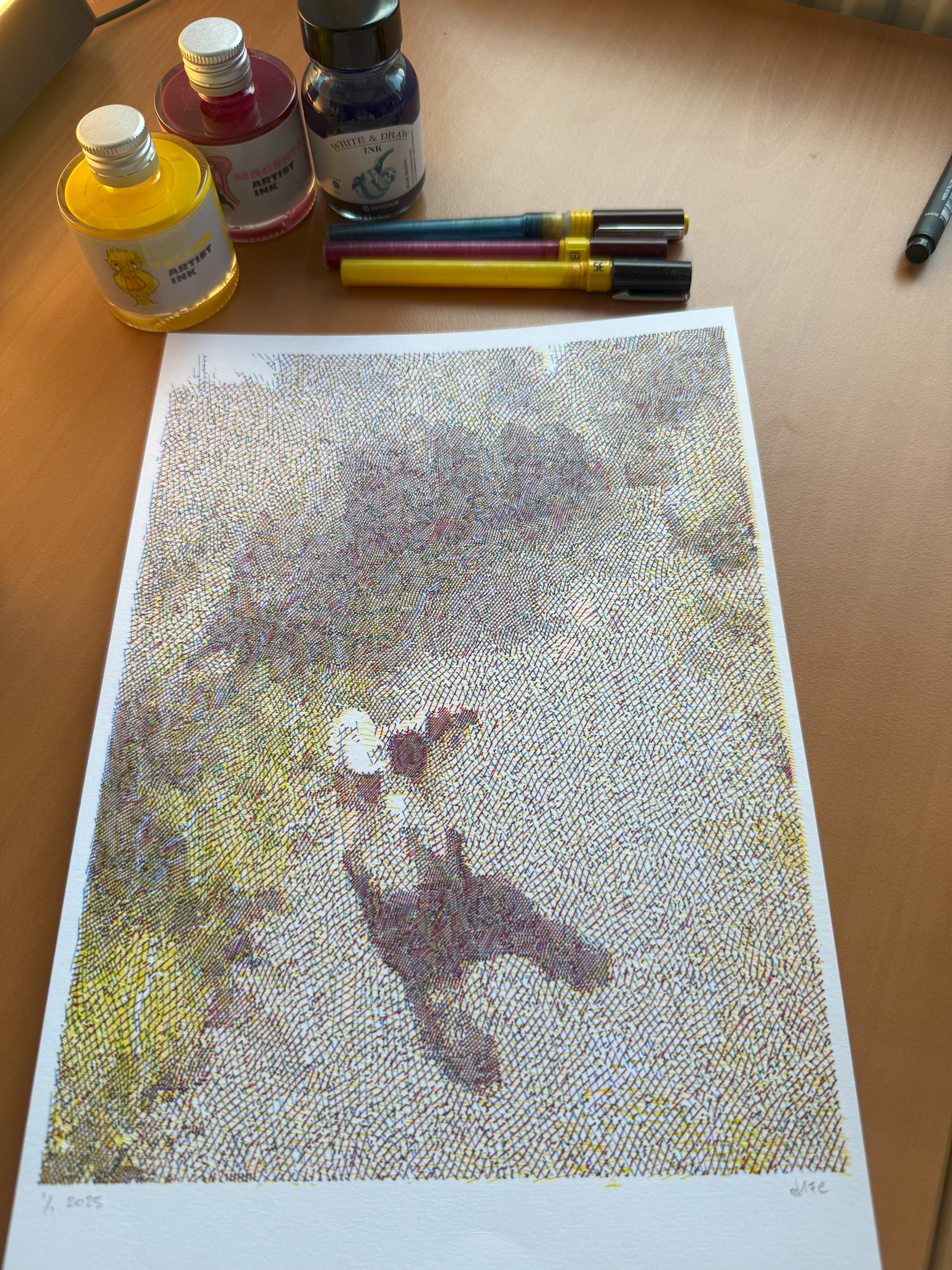 The pet plot challenge by @bantamtools was the perfect opportunity to take new CMY (WIP) version of RSTR for a spin. It turns an image into 3 layers of cyan, magenta and yellow SVG lines, or hatchings if you will.